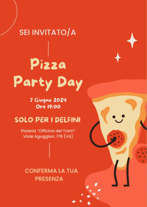 Si tratta di una pizzata presso la pizzeria "Officina del Tram" - Viale Aguggiari, 178 (VA) - in presenza di tutto il personale scolastico, oltre che di tutte le insegnanti.