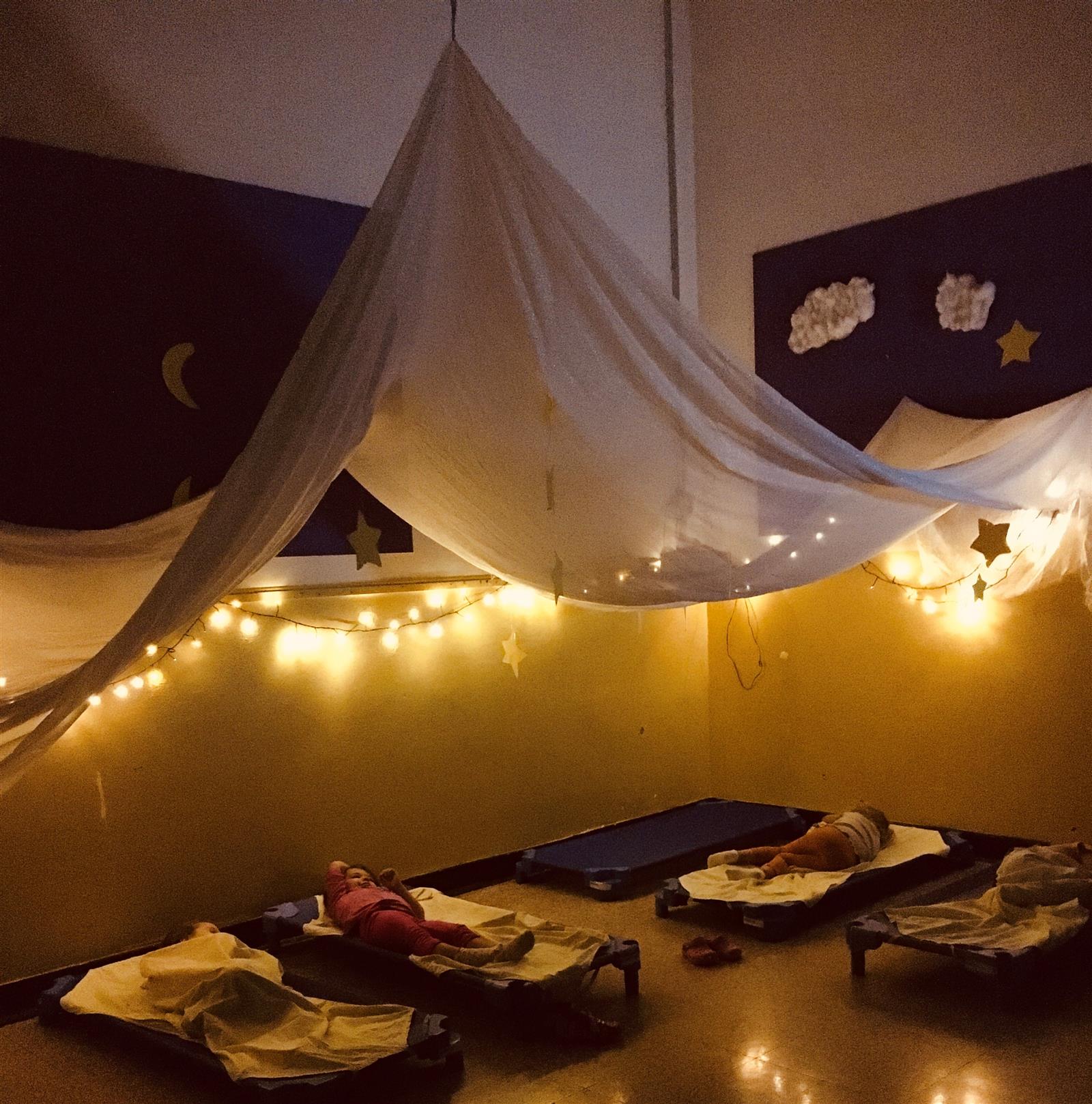 Oltre alle quattro sezioni, la nostra scuola dispone di una STANZA DELLA NANNA dedicata al riposo pomeridiano per i soli bambini di 3 anni. A gestire questo momento di rilassamento, c'è a disposizione un'insegnante apposita. I bambini dormono dalle 12:45 alle 14:45 circa.